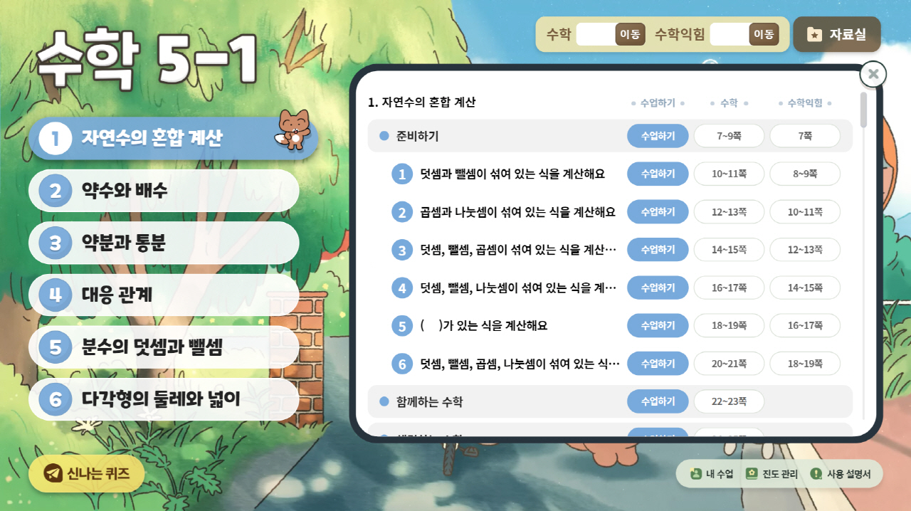 영상, 신나는 퀴즈, 조작 활동 등