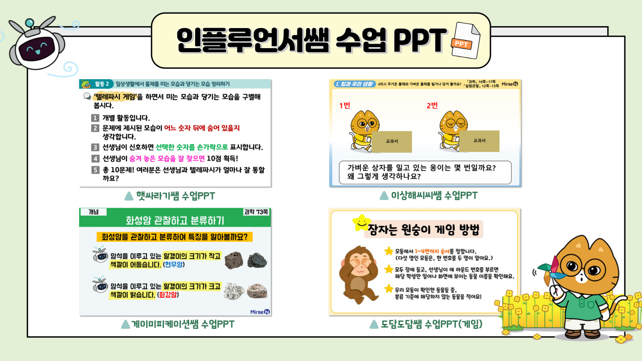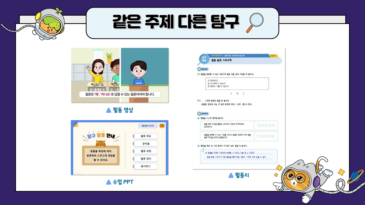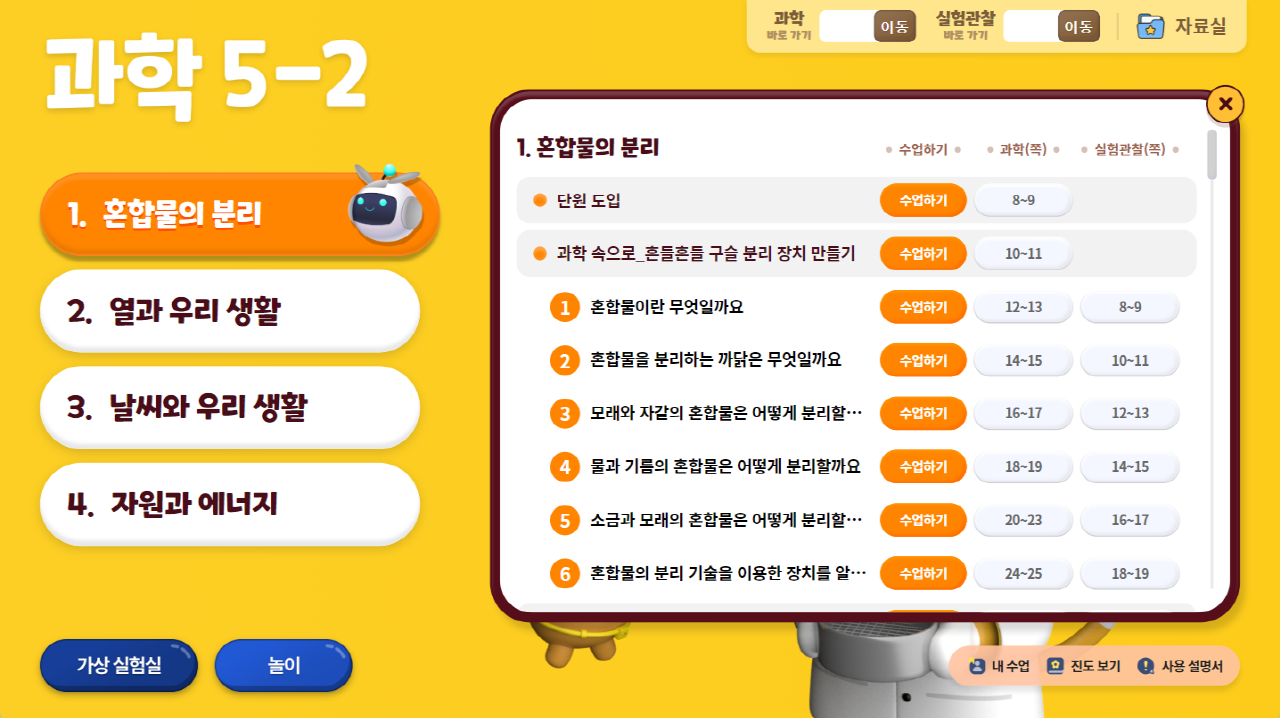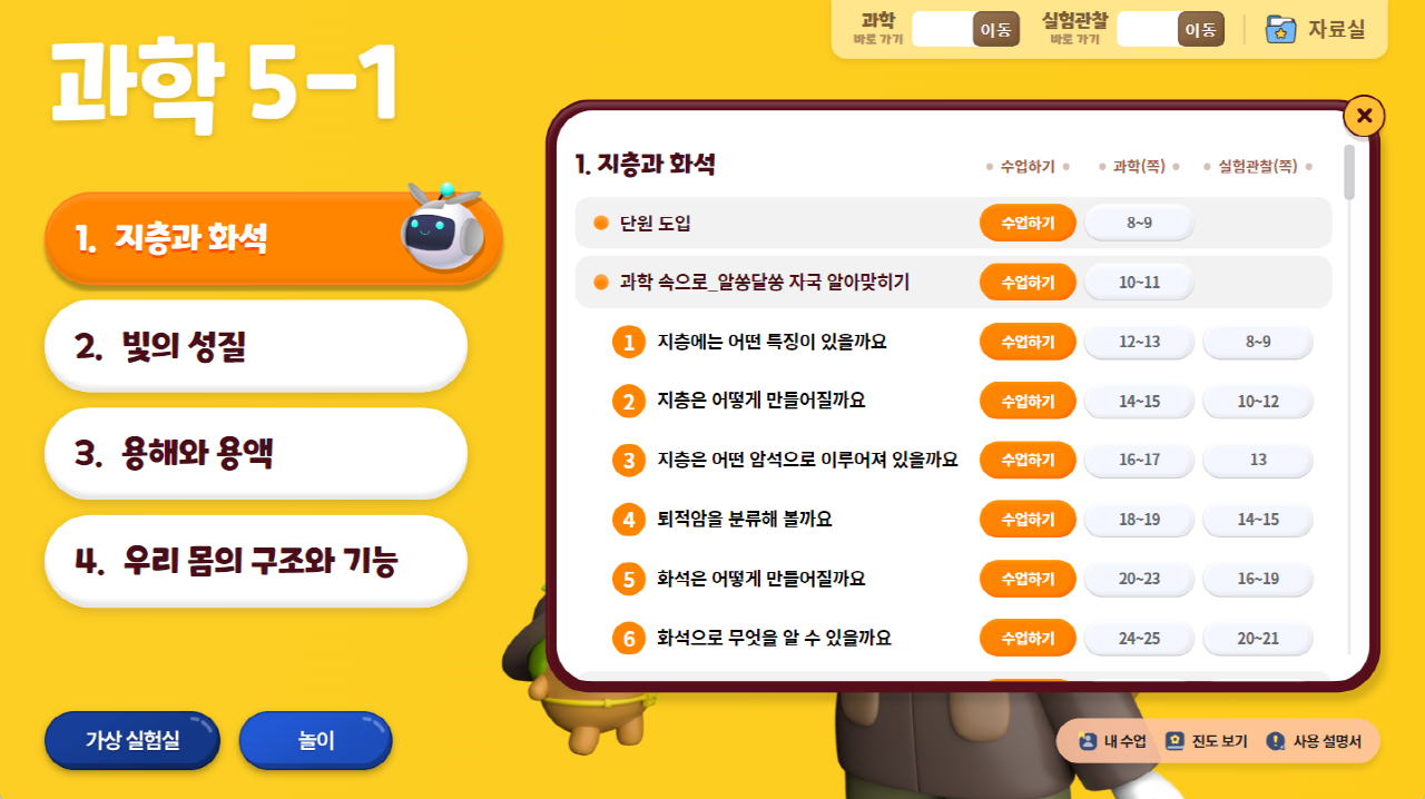 캐릭터들과 함께 탐구할 수 있도록 구성하였습니다.
