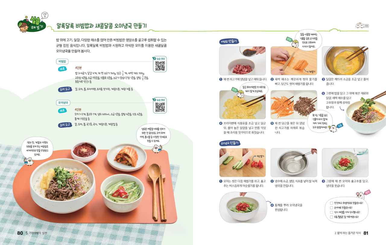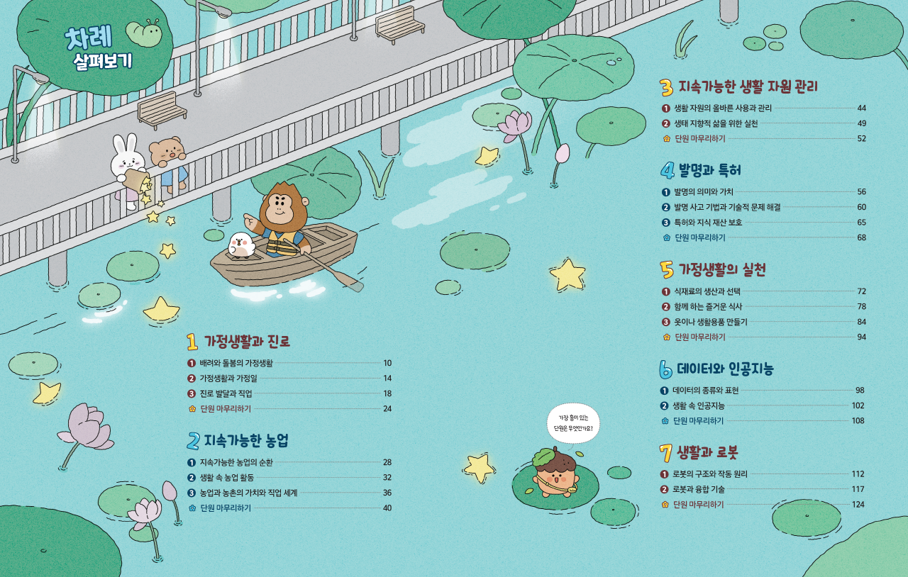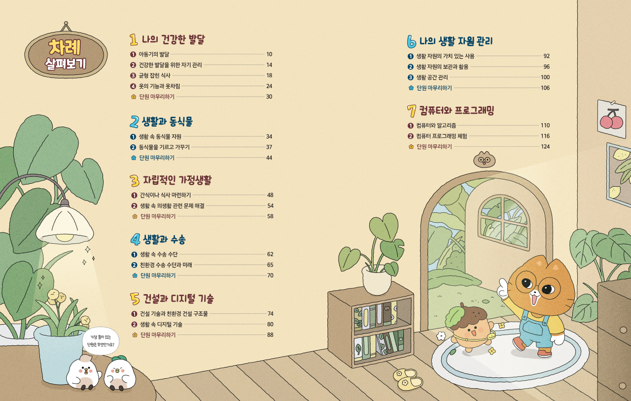 생활에서 접하는 실과 이야기를 귀엽고 친근하게 표현하였습니다.