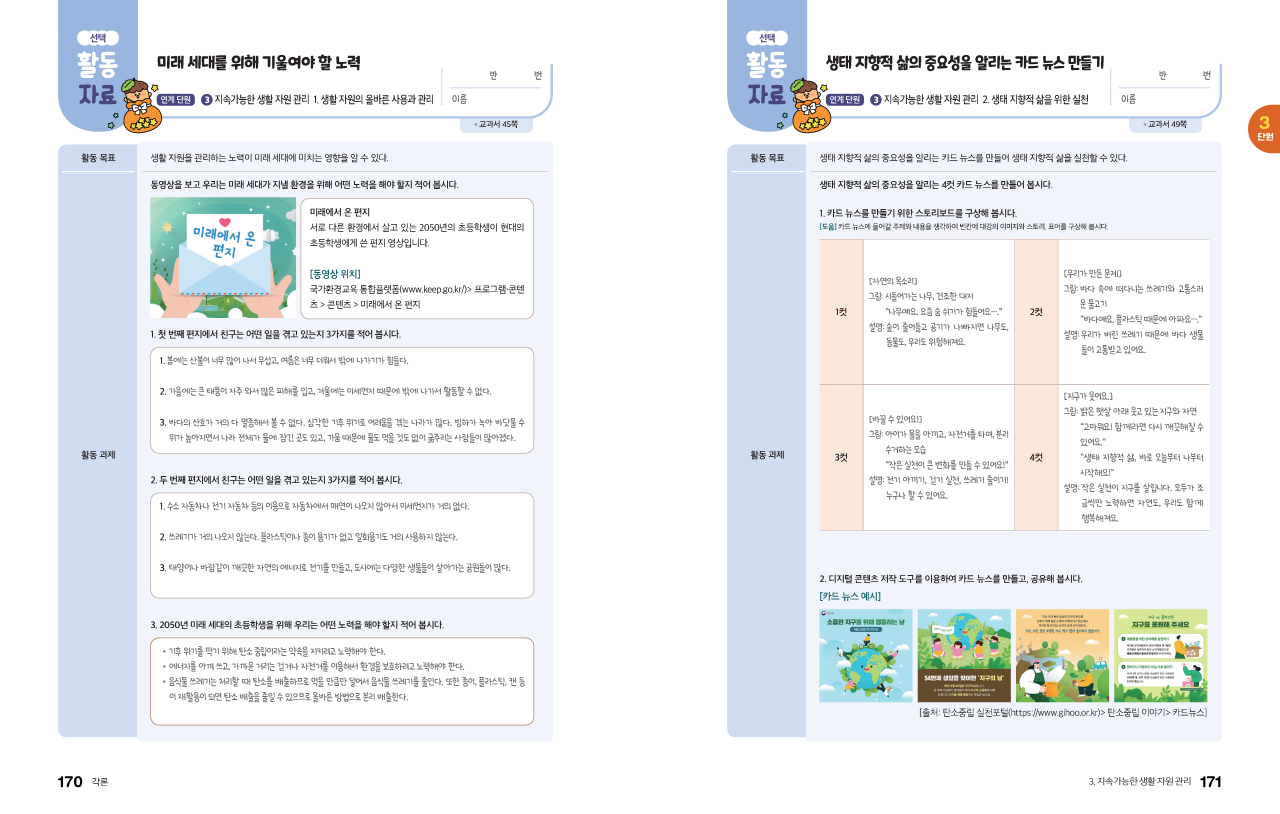 생활 역량과 문제 해결 역량을 기를 수 있도록 만들었습니다.