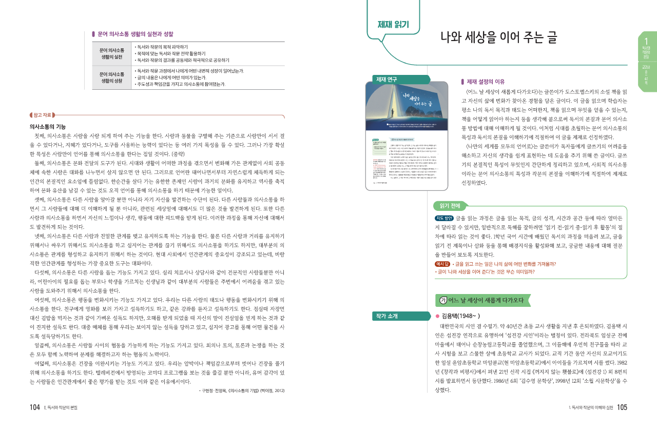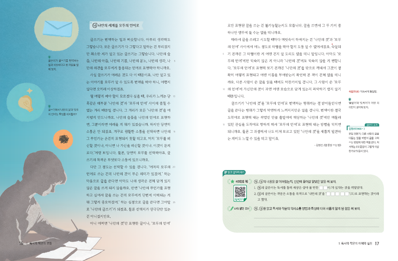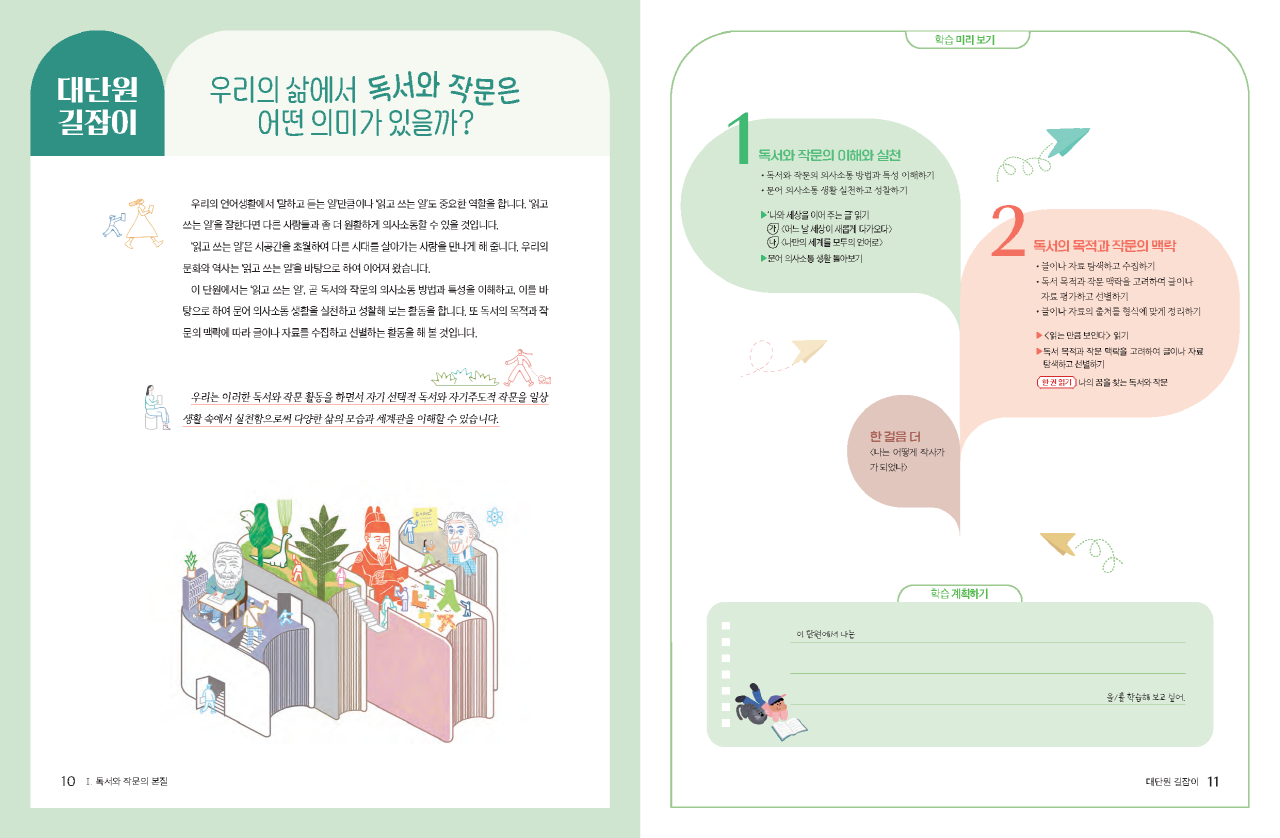 글을 읽고 쓰는 즐거움을 알려 주는 교과서를 개발하고자 하였습니다.