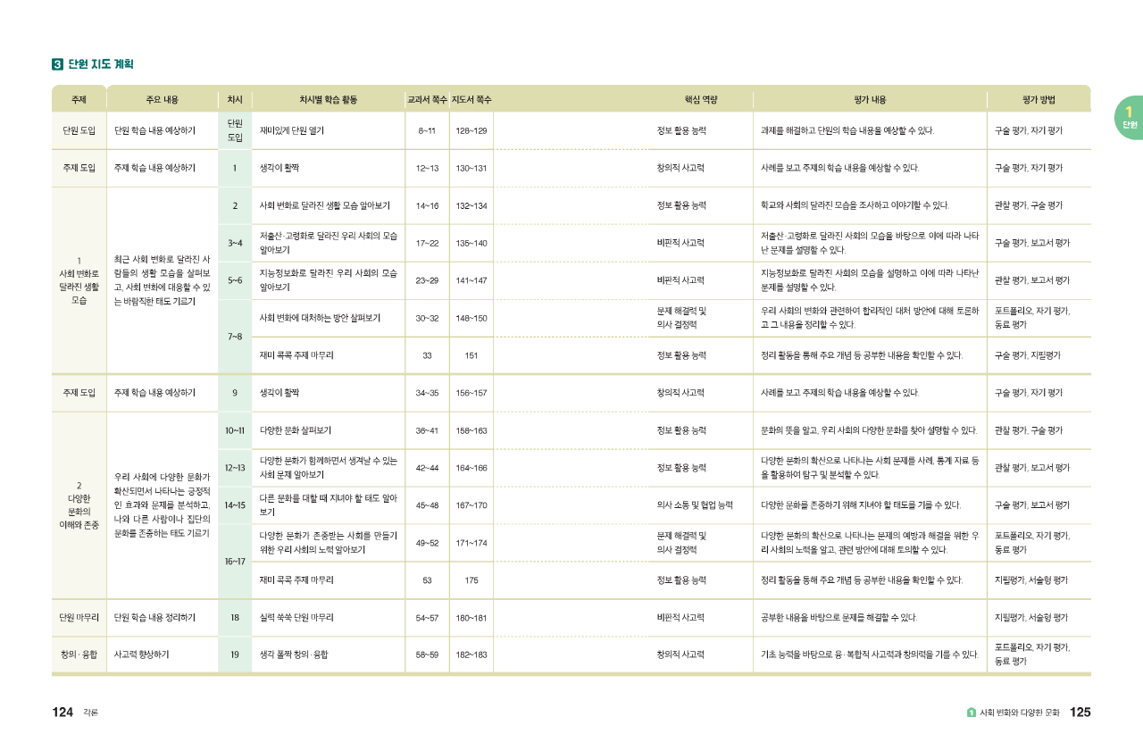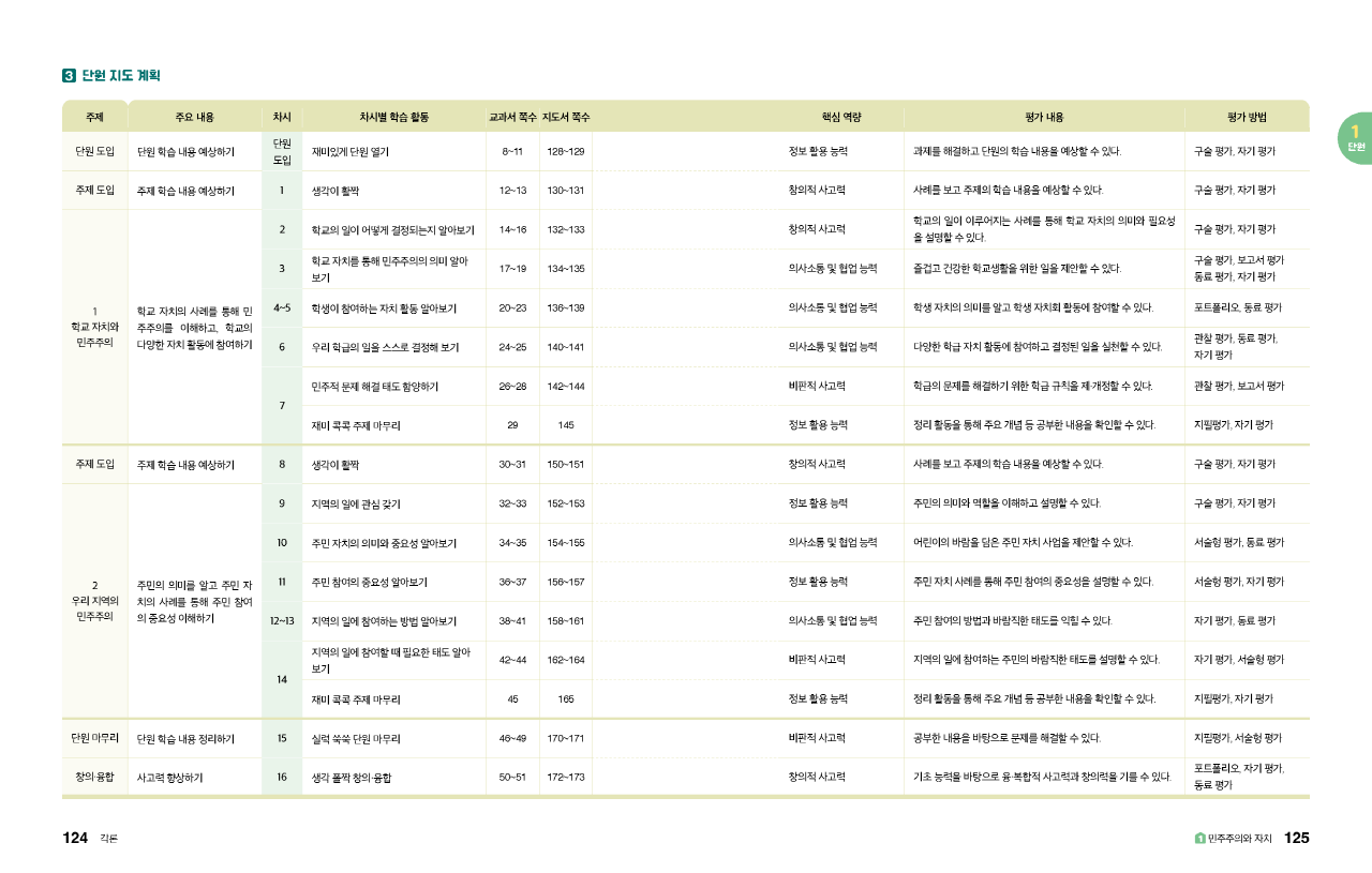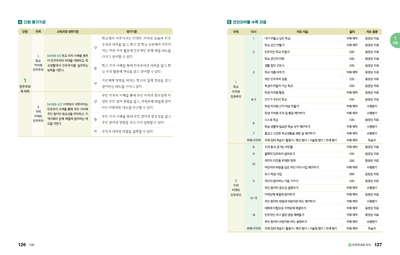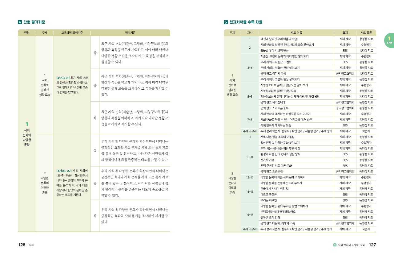 교과서별 주요 주제와